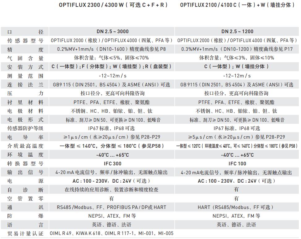 科隆電磁流量計OPTIFLUX4300W